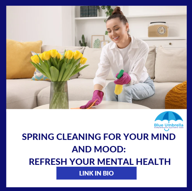 At Blue Umbrella Psychiatry, we help patients clear mental clutter, reset routines, and create space for focus, calm, and emotional balance — using both therapy and psychiatric care.