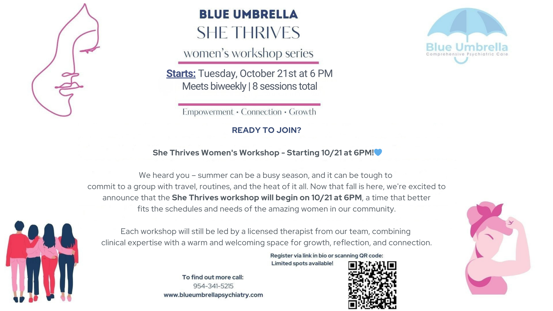 We heard you — summer is a busy season, and it can be tough to commit to a group in the midst of travel, routines, and the heat of it all. We're excited to announce that the She Thrives workshop will be postponed to a time that better fits the schedules and needs of the amazing women in our community.